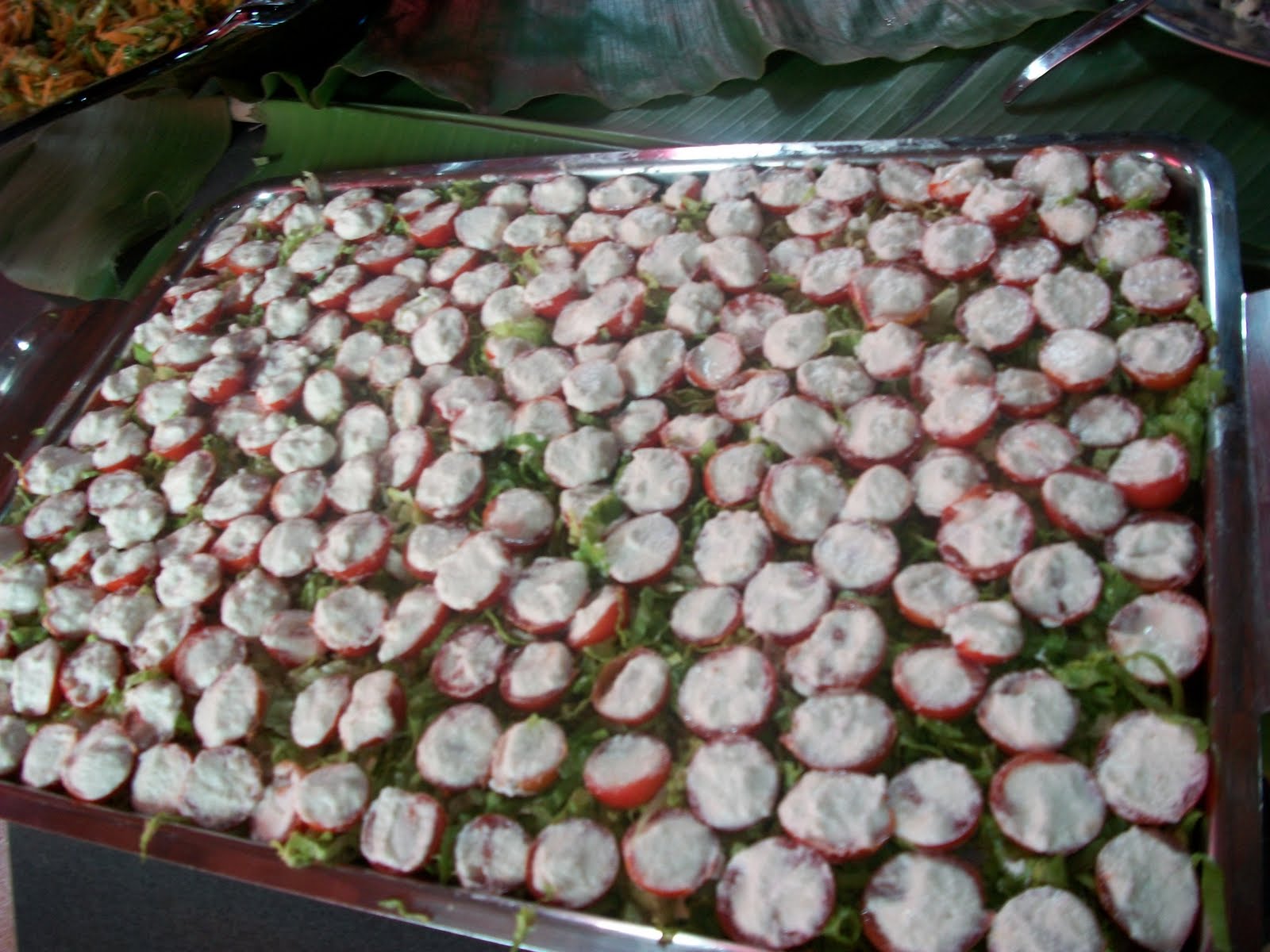 rabanete ralado com shoyo e limão, salada de aipo fatiado bem fininho com