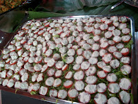 rabanete ralado com shoyo e limão, salada de aipo fatiado bem fininho com